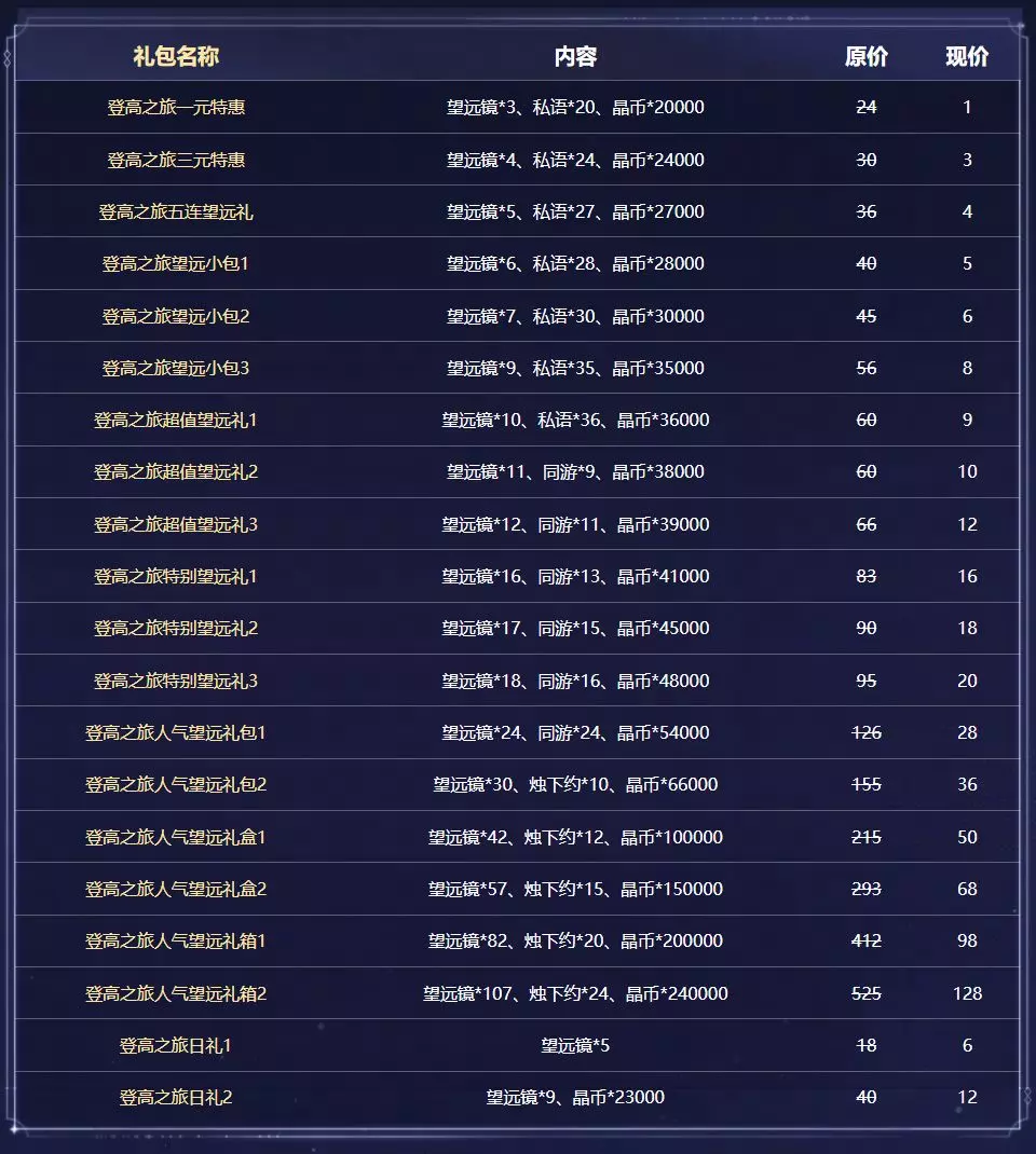 2. 【重阳揽星】活动期间,还可参与【登高之旅】。使用【望远镜】观赏风景,更有机会解锁辰星侧影、金色藏品、藏品培养道具、体力兑换道具等奖励。