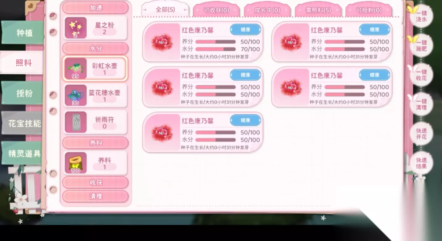 资源分配策略直接影响花宝成长效率。游戏内设有多种加速型养成道具,例如“智慧之露”用于即时经验补足,“成长之花”可提升单次培养收益。建议优先集中资源培养主力花宝,避免分散投入导致整体战力滞后。
