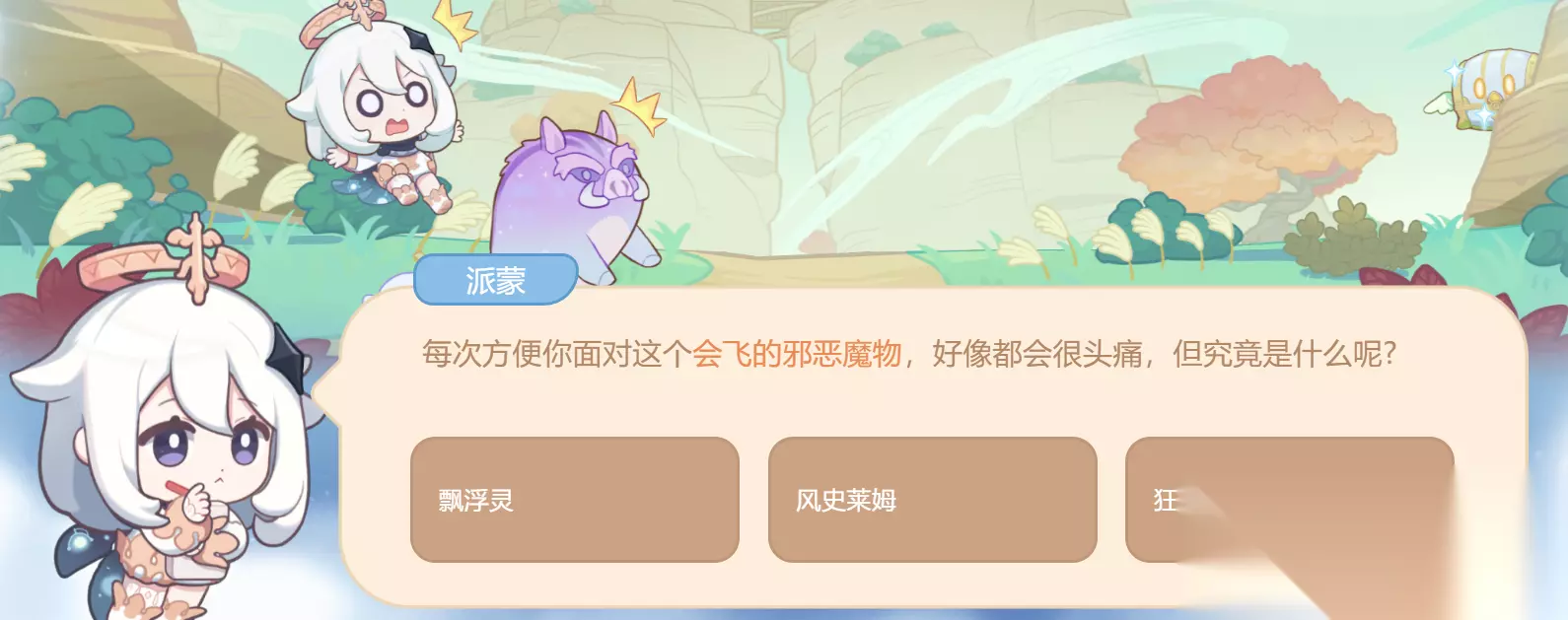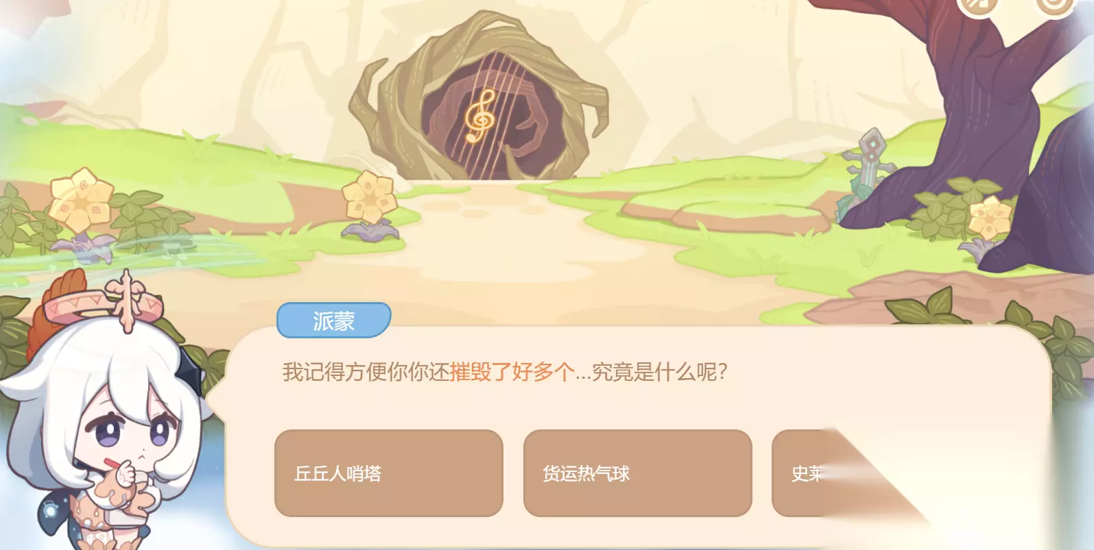 正确答案:会飞的宝箱。 (注意:每个人试卷答案的顺序可能不一样) 问题答完分享获得 20原石加30000摩拉