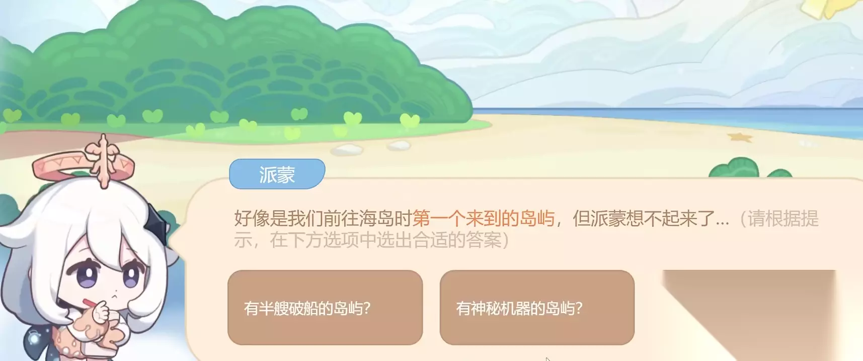 正确答案:派蒙(注意:每个人试卷答案的顺序可能不一样) 第五天 问题一