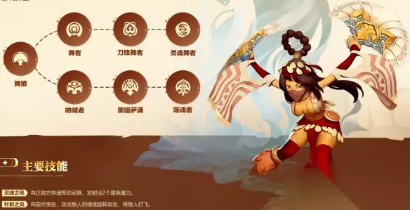 下面是舞娘四个职业的详细分析: 灵魂舞者 强度定位:一线输出。 上手难度:极易上手。技能机制简单粗暴,非常适合新手。 主要特点:完美契合当前版本的爆发节奏,自带增伤和回血能力,还有“锤子舞”提供短暂无敌,生存和输出兼顾。其技能机制简单直接,易于掌握。