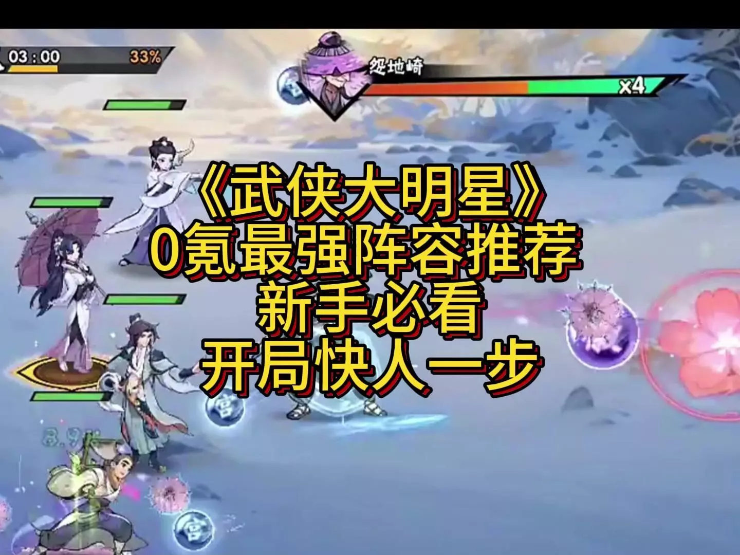 这是《武侠大明星》新手攻略第一期,为新手扫清游戏障碍,介绍了飞花打雨剑等秘籍的属性、进阶与效果,推荐了东升侠客,还展示了秘籍搭配与战斗阵容布局,助力新手快速上手游戏。