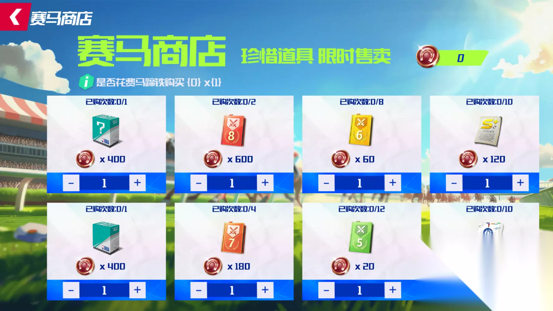 约老师赛马 活动时间:5月3日 00:00-5月9日23:59 和约基奇一起驰骋赛马场!玩家可使用马蹄铁加速赛马到达终点获取大奖!未消耗的马蹄铁可以在兑换商店中进行奖励兑换!