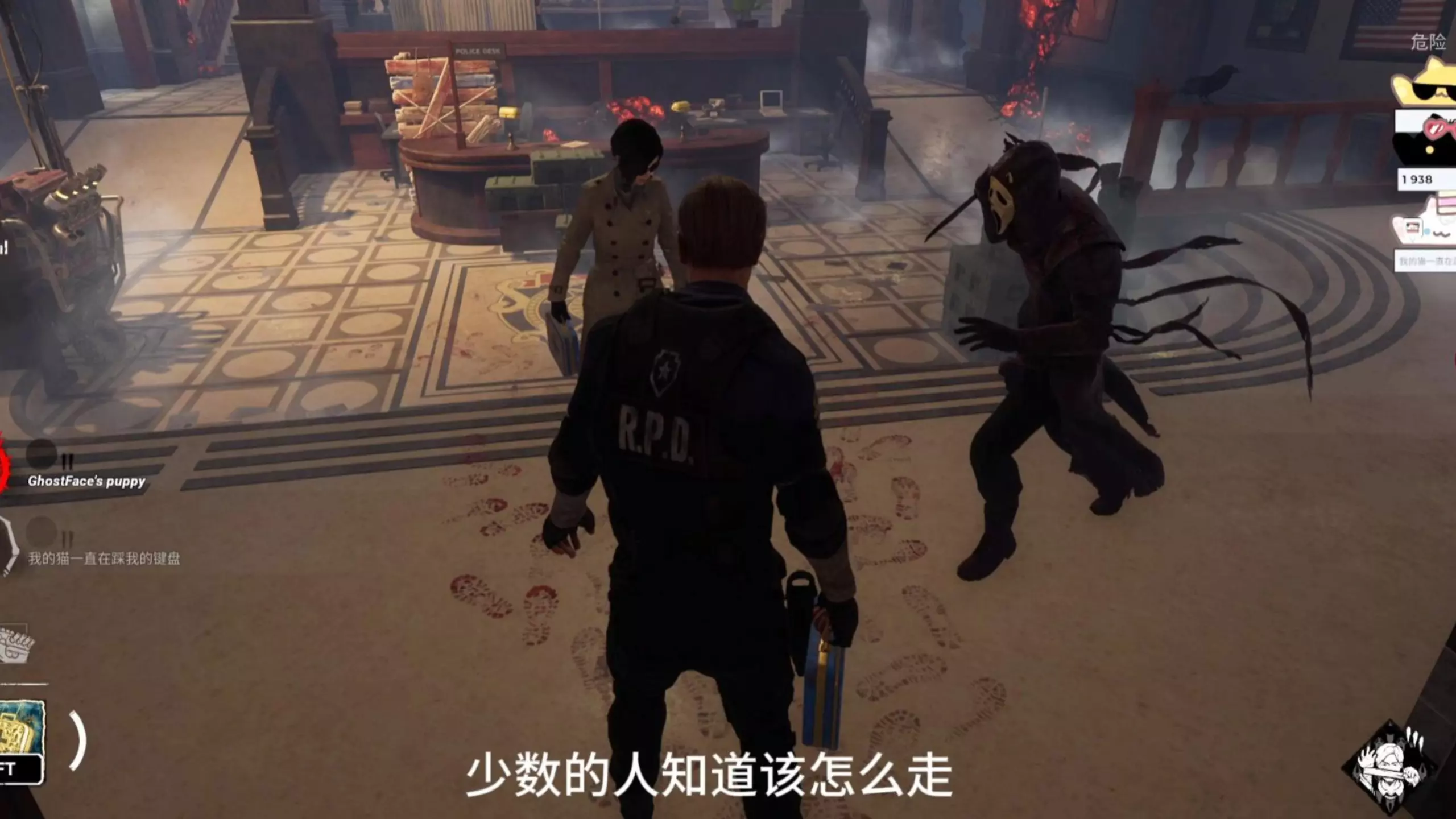 这是《黎明杀机》的游戏内容,展示了玩家操控角色与好友在游戏里的趣味互动环节,包含角色对抗、追逐等精彩的游戏场景,是玩家的自存娱乐内容。
