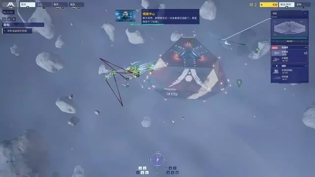 收集到残骸后不久就触发过场剧情,敌方大型舰队直接跃迁到了此地,我们惨遭包围。