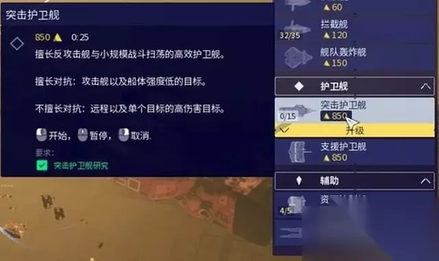 剧情过后解锁新的“突击护卫舰”,是较为强力的主战单位(当然也很贵)。