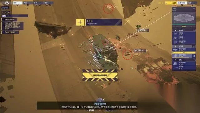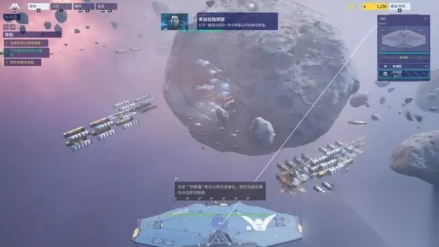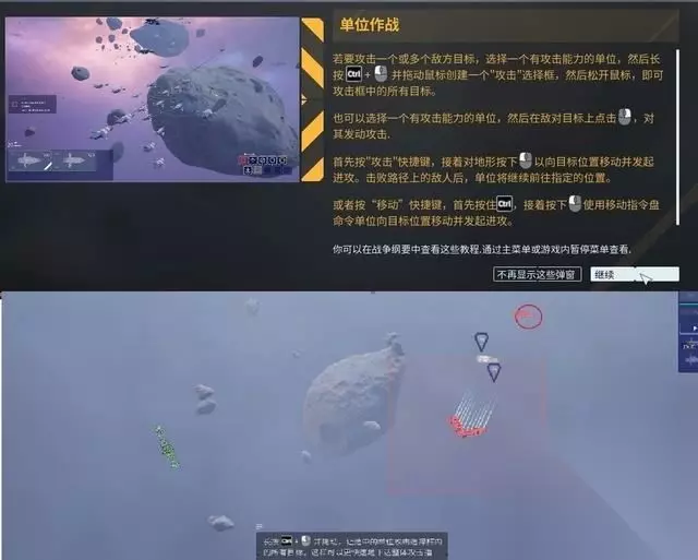 观看开幕剧情后进入战役关卡,第一关也是让玩家熟悉一些基本操作。 母舰作为玩家的核心单位,虽然拥有攻击能力,但尽量还是不要让它直接参与战斗。