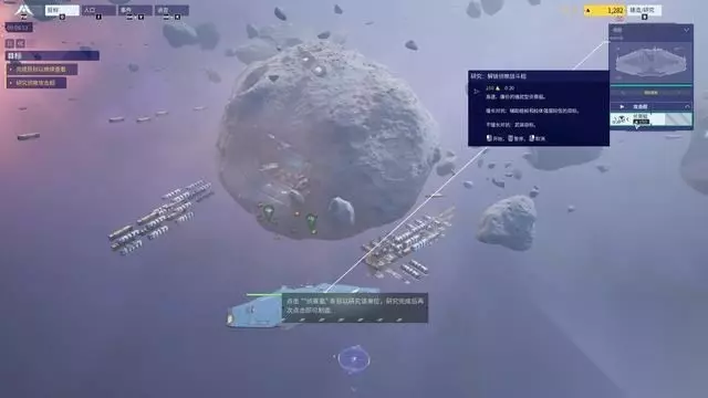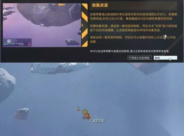 穿过星云后,传感器探测到下方残骸内有资源,建议尽快派遣单位去采集资源。 母舰其实也可以直接往下挪,之后会有需要到它的地方。