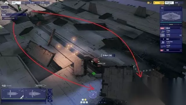 切换至“被动”姿态后,单位会在移动或进攻的同时积极寻找掩体,提高存活率。 沿下图路线即可绕到护卫舰侧面。