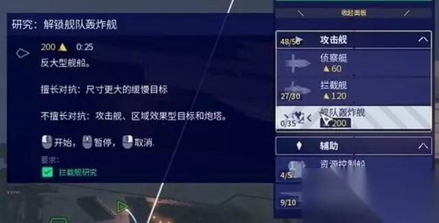 此后学到的停泊功能在前期相对还算有用。 停泊在母舰的飞船可以快速回复生命值。选中编队后,也能利用“F3”键快速选定残血单位。