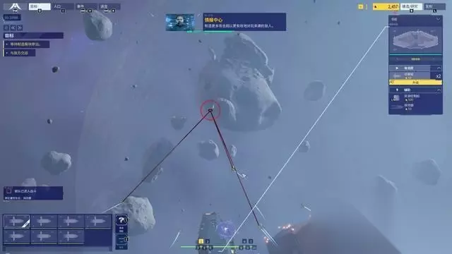 下图标记的是本关主要目标之一,让开采舰过去就行。 不过目标点基本都有敌人,别忘了先扩充军备。