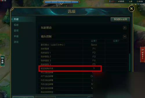 3、返回游戏,按下刚才设置中的热键就可以打开/关闭视角锁定了(默认设置为y键)。 以上就是英雄联盟视角锁定解除方法介绍的全部内容了,更多英雄联盟游戏精彩攻略,敬请关注本站更新。