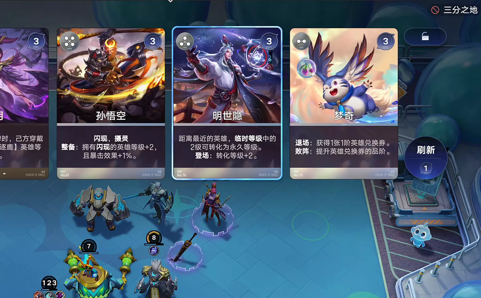 而每合成3次卡牌还会获得一张效果牌,商店和拍卖中获取具有不同增益的效果牌,使用后能带来等级提升、搜寻英雄牌、获得buff增益等效果。