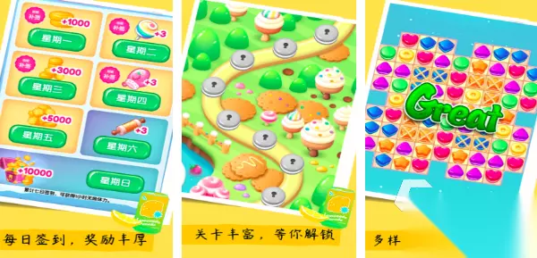 在这片消除乐园当中,你可以通过消除方块换取金币,购买更多的乐园装饰品,有趣清新的游戏画风,超过500个趣味消除关卡内容,三种创新主题道具,陪伴你完成闯关挑战。伴随着每一次连肖可以激发绚烂的特效,真的解压感十足。清新可爱的BGM,玩家的消除之旅更加解压,多样化的关卡玩法等待你来挑战。 高速下载 普通下载 优先233乐园APP下载 3、《甜品消消乐》
