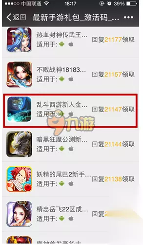 第二步,点击右下方领礼包,找到乱斗西游,回复21147领取礼包。