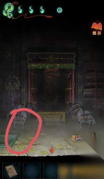 《纸嫁衣7卿不负》第三章听妄全谜题解法图文流程攻略 1、进入第三章后,点击界面左侧的箭头到达左侧区域,点击庙前的纸人两次,知道他点了一份可乐外卖。 2、点击牛头雕像,根据咖啡杯和马脸雕像悬挂得到线索,解锁得到粗香,马脸雕像手上得到剪刀。