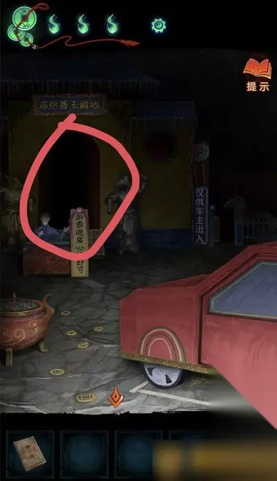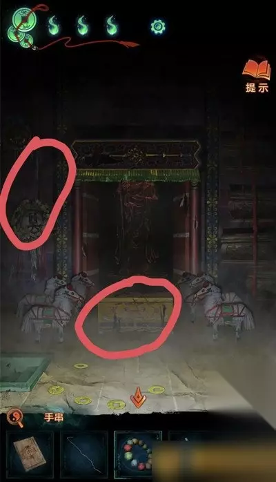 4、使用电线获得摇摆车的钥匙,返回香炉房间使用钥匙进入停车场,完成小游戏获得手串和小物品。