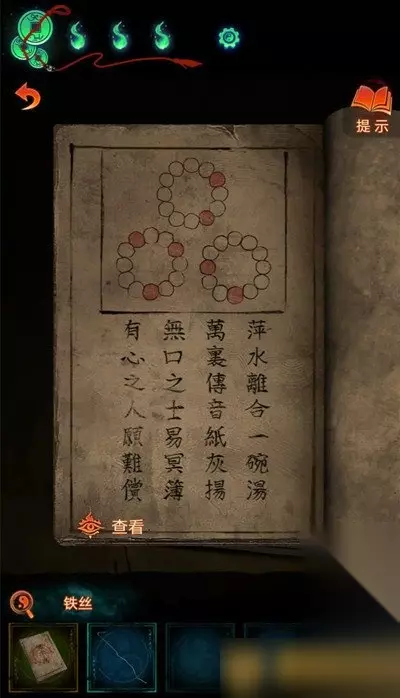 14、进入雕像门前使用空白冥籍,完成小游戏让空白冥籍使用苦原料,然后根据书中的线索转动表串获取冥籍。