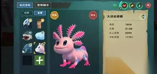 拿来当坐骑的话,他们的陆地速度在七千到七千七,水上速度为八千五到九千二,冲刺的时候素的能够提升八九千。大的蝾螈也会在各方面的数值有一定的提高不过都是几百。如果使用战宠的话,它的泡泡可以使得地方减速,而且笼罩住玩家可提高体力还有水分。