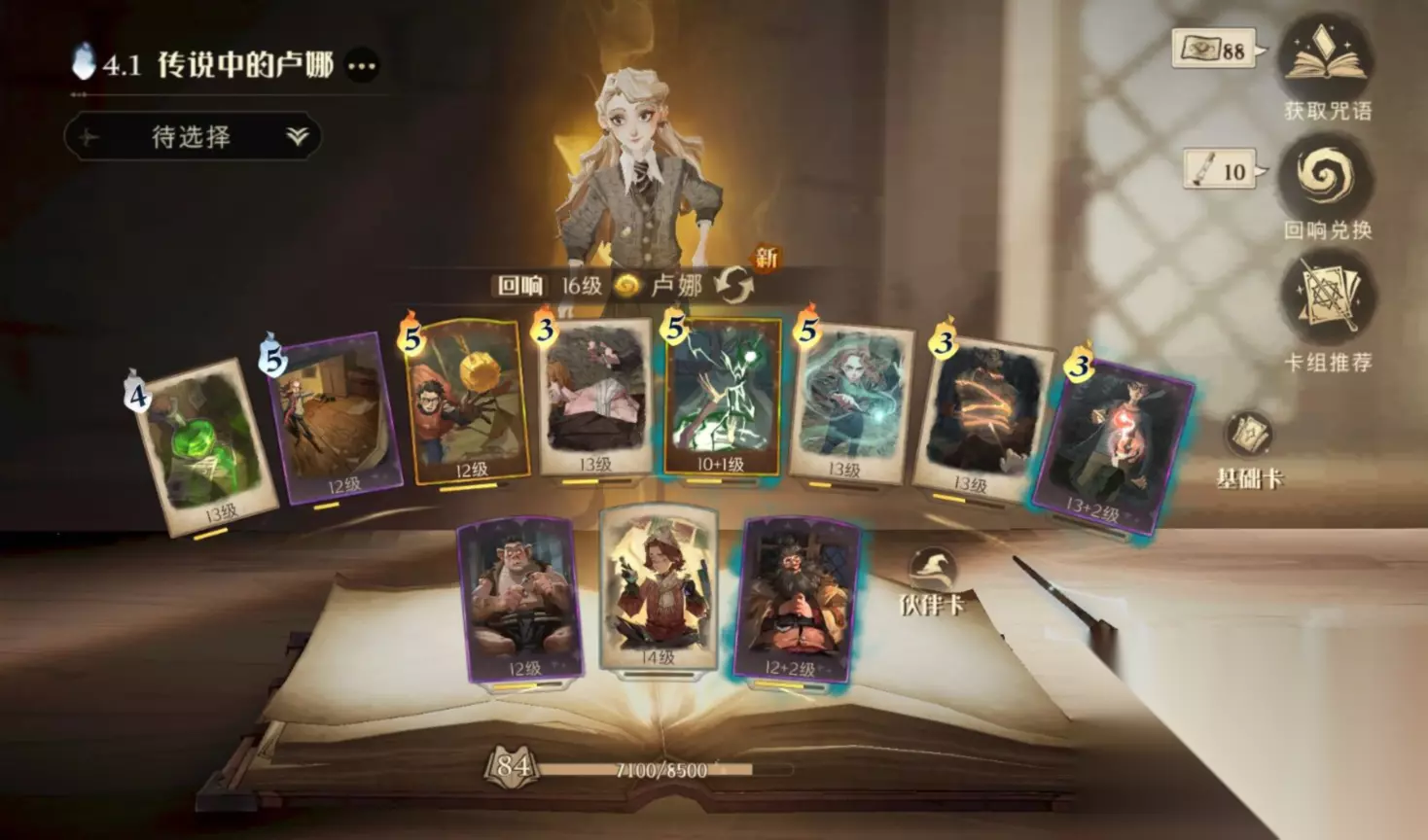 ✨基础卡:八眼巨蛛的毒液,金色飞贼,霹雳爆炸,统统加护,钻心剜骨,白鲜香精,除你武器,速速禁锢。 ✨伙伴卡:格洛普,丹尼尔·佩杰,鲁伯·海格。 ✨介绍:使用统统加护和白鲜香精保证自己的血量,钻心剜骨解单体高血量生物,霹雳爆炸和八眼巨蛛的毒液解数量多的召唤物,搭配上带控制效果的除你武器和速速禁锢来解罗恩。更新后卢娜回响的神奇动物生命*150%的效果让神奇动物更容易分裂,把时间拖到后期魔力回复加速,卢娜即可形成超快速铺场获得压倒性胜利。面对除斯内普外的回响,在魔力加速后都有着极大的优势。 ✨回响:尽可能多的魔咒加成和重要的神奇动物加成。 ✨队友卡组建议:卢娜,双子,海格。 ❄魔咒小技巧: ✨1.时间转换器在前期时候放在自己前方(不要太近)可以有效抵挡大量的伤害(再也不用怕哈利的变形咒+雪球咒,需要注意昏昏倒地)。由于有着凯文的攻击加成时间转换器也是用来帮忙解伙伴卡和召唤物的利器。同时时间转换器也可以用来破云雾缥缈和抗伤害,让神奇动物有着更好的攻击环境从而分裂。 ✨2.金色飞贼提供的步数足以让卢娜前期有着不停移动躲避伤害的底气。 ❄神器动物优先释放列表:(攻击速度快容易分裂和有特殊效果的优先) ✨3费:康沃尔郡小精灵(解场时释放) ✨4费:灵猫,鸟蛇,蜷翼魔(清伙伴卡和扎堆召唤物奇效),雷鸟(铺场形成后释放) ✨5费:恶婆鸟(解场时释放),金色飞贼,打人柳,火螃蟹,独角兽,棋子士兵 ✨6费:澳洲蛋白眼幼龙,石墩(逼得所有人都带上霹雳的罪魁祸首) ✨7费:三本妖怪书,凤凰,夜骐,挪威脊背龙蛋 ❄对局思路: ✨1.开局释放金色飞贼(没有的话就先放别的魔咒来获得),等神奇生物卡升阶成为进攻型召唤物时,配合格洛普一同释放。 PS:神奇动物根据上方列表选择释放。 PS:蜷翼魔+速速禁锢+八眼巨蛛的毒液可以打出奇效。 ✨2.和队友根据对方回响选择站在中场或后排轮流释放统统加护,使用魔咒进行进攻的同时根据列表释放出高攻速容易分裂的神奇生物。 PS:丹尼尔在手上有龙蛋时配合释放,这样可以快速孵化龙蛋形成一波压制(龙蛋孵化后只需要攻击2次就能分裂再次喷火,体验服为攻击一次就能分裂)。 PS:速速禁锢和霹雳爆炸用来清对面的召唤物(比如石墩)和伙伴卡和造成伤害是个不错的组合。 PS:除你武器无论是内战还是对战赫敏,弗利维,海格都有着不错的效果。 ✨3.当自己死一次被拉起后释放海格,让队友上车,然后就是轮流统统加护,白鲜香精和移动卡(靠金色飞贼攒)来保证血量的安全,接着继续用魔咒和神奇生物进行进攻。 ✨4.魔力加速后,除统统加护,白鲜香精和金色飞贼外的额外魔力,根据情况释放其余魔咒从而让神奇动物升阶,让己方的神奇生物成群形成动物园。 ❄卡牌替换: ✨除你武器和八眼巨蛛的毒液可以替换成飞来咒,冰冻咒,吼叫信,气象咒,充气咒等。(确保手中有一个控制效果的魔咒。) ❄低费哈利