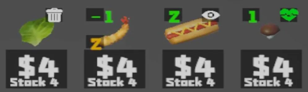 游戏中有食物商店列表,在每结束1天后,会自动进入该商店界面;如下图:
