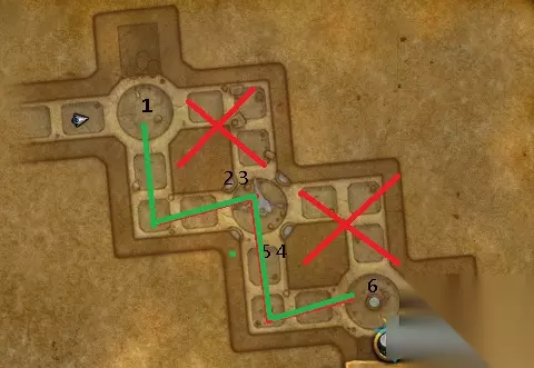 简单方法: 转动顺序为5-5-1-2-2-6-4-1-3 详细方法: 房间里一共有6个柱子(线圈),转动这些线圈即可改变光线的方向;光线有蓝色和紫色两条,当两条光线汇聚在同一个角落时,可以解开封印。 所以我们需要做的就是按照上面简单版的步骤,分别顺次转动线圈~解锁这些封印就可以啦。 注意:我们走的时候只走绿色线路,红色线路有小蜘蛛,很烦,浪费时间!(如图)