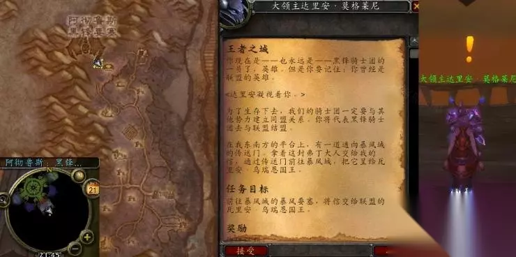 魔兽世界怀旧服WLK王者之城任务攻略。不少玩家可能还不太清楚DK的这个任务如何完成,下面233乐园带来具体的攻略,供各位玩家们参考。 王者之城任务攻略 接取等级:55 接取NPC:大领主达里安·莫格莱尼(阿彻鲁斯:黑锋要塞) 完成NPC:瓦里安·乌瑞恩国王(暴风城,暴风要塞) 奖励声望:6000点暴风城 任务开始: