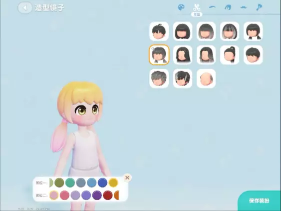 外形方面:黑色长发配猫耳,星星、像素发卡添俏皮;戴猫耳圆眼镜