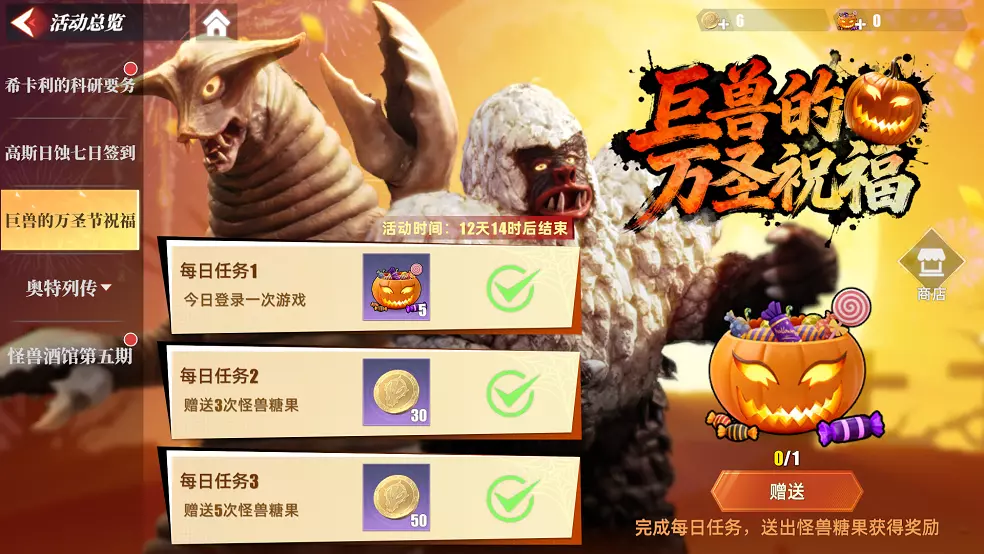 不给糖?就捣蛋!万圣节限定福利来啦!登录就有奖!参与活动免费领取怪兽奇卡斯和怪兽萨德拉吧~