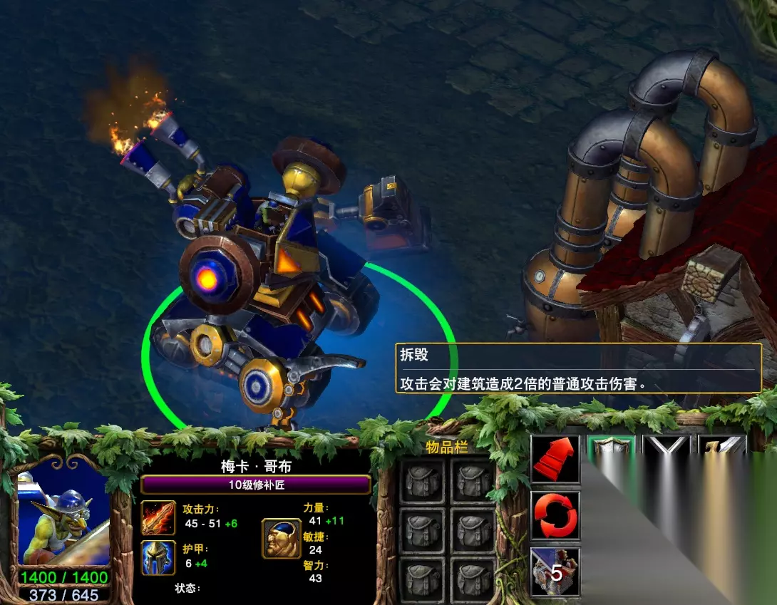 拆毁:机械地精的特殊技能,变成机械地精后,攻击会对建筑造成2倍普通攻击的伤害。 核心作用