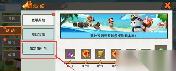 3、之后选择其中的激活码礼包,然后复制粘贴使用。