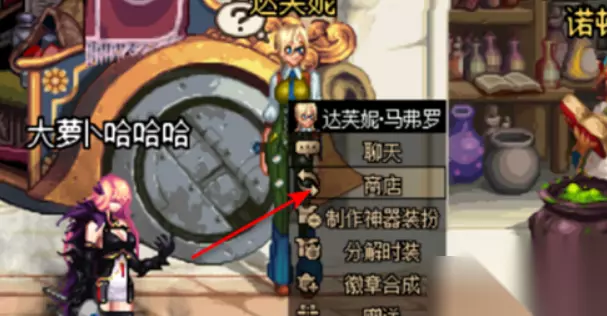 3、与达芙妮对话,点击【商店】。