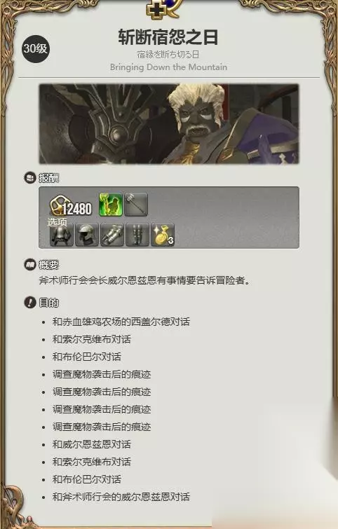 最终幻想14中每个职业都有特定的职业任务,很多玩家都想知道战士职业任务在哪接,玩家需要去利姆萨罗敏萨上层甲板(11.2.6.1)处找威尔恩兹恩接任务,接下来就由小编给大家带来了详细的最终幻想14水晶世界战士职业任务攻略! 最终幻想14水晶世界战士职业任务攻略: 一、前置要求 1、首先斧术师达到30级,去利姆萨罗敏萨上层甲板(11.2.6.1)找【威尔恩兹恩】接任务【斩断宿怨之日】;