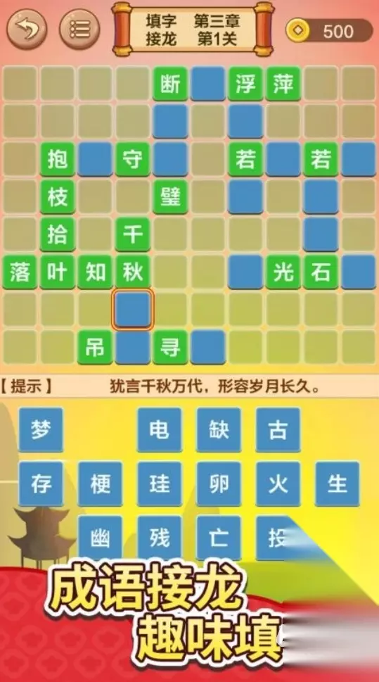 若各位想玩一些关于汉字类的游戏,那么成语游戏是比较不错的选择,它们不光能让玩家们获得答对题目后的满足感,还会让各位在游玩时潜移默化地增加成语词汇量。趣味性高的成语填字游戏合集已经为各位准备好了五部很优秀的成语作品,它们的玩法也比较好上手,来试试吧。 1、《成语接龙闯关》
