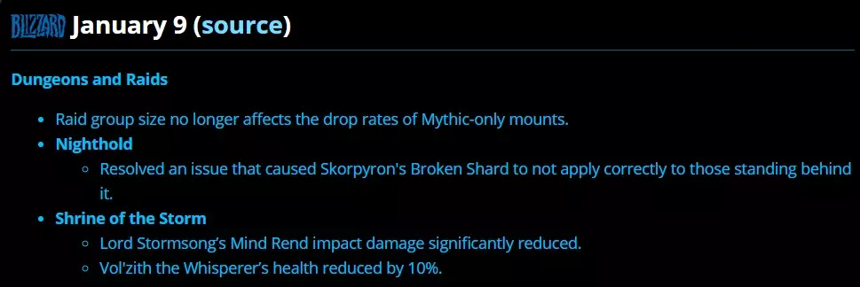 1月10日的在线热修正中,最让人关心的就是史诗难度下人数不再影响坐骑掉率,这么说原来各位小伙伴单刷其他资料片的坐骑的时候,实际上是降低了掉率的,感觉自己被耍了。