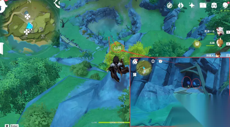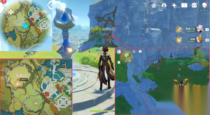 2,接着回到七天神像的位置,向着北方向下方的水池飞去,之后就可以在水池的前方看到一个山洞,这里可以获取两个夜泊石。