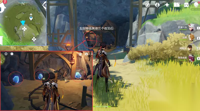 2,当玩家进入到山洞之后左拐就可以看到三个夜泊石。