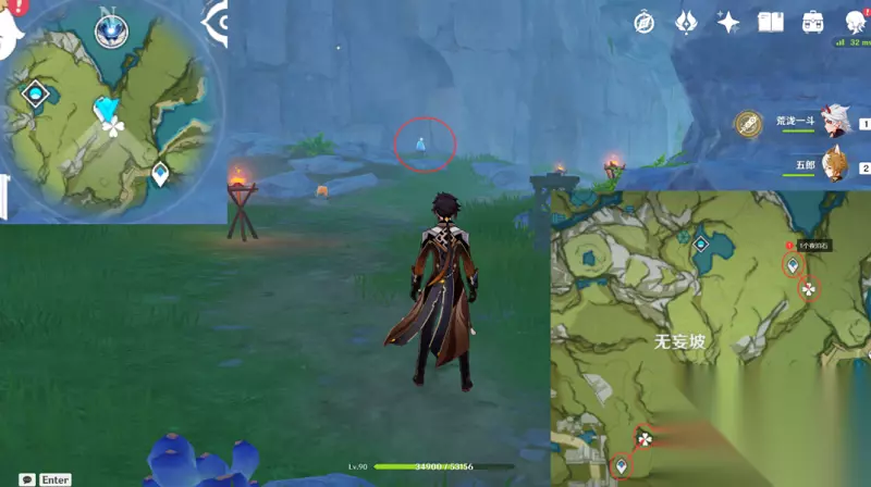 路线5:3个夜泊石 1,前往无妄坡右上角的传送点,向着身后前进就可以看到一个夜泊石。