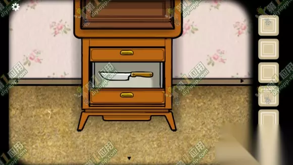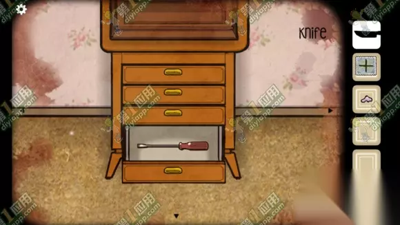 拉开抽屉发现一把小刀,点击获取。