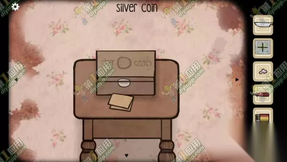 银币 【一枚银币】 首先我们走近左上角处的柜子,看看上面的那个盒子。