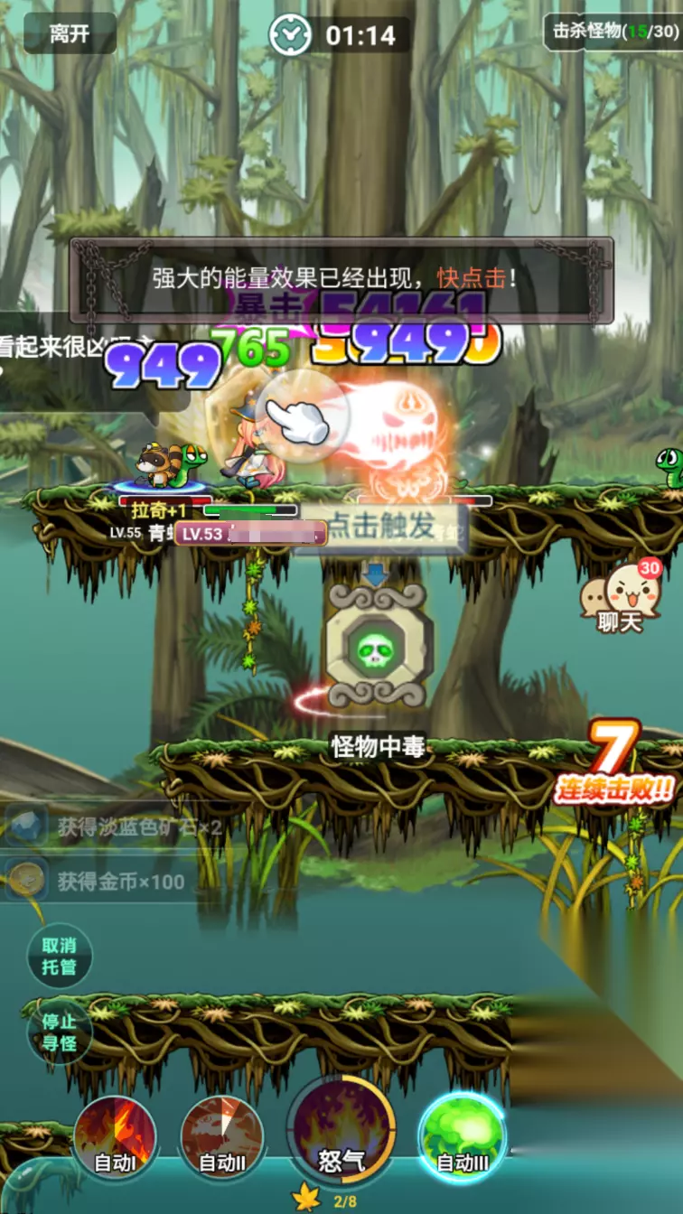 其次就要注意副本里的机关和道具,在驱散副本中强大的怪物后,会在地图里生成各种有利于玩家的buff,比如给怪物施加全体中毒效果或者冰冻效果,抑或是百分比增伤,这是需要大家点击才能拾取的,在打一些比较吃力的副本时一定要在第一时间激活,这样闯关就事半功倍了。