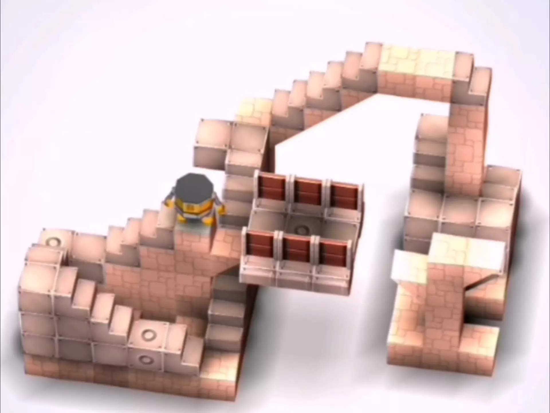 6.获取第三个钥匙箱:带着两个钥匙箱,进入地图的右上角。利用钥匙箱依次踩下机关,同时使角色在平台下方踩下机关,即可获取尽头处的第三个钥匙箱。 7.叠加钥匙箱:利用平台的高度差,将三个钥匙箱叠加在一起,并将它们整体移动到左下角的齿轮地图上。在齿轮的帮助下,调整钥匙箱的方向,将它们放置下去,并控制地下平台的高度,再次叠加两个钥匙箱。 8.激活城堡:拿到四个钥匙箱后,进入右侧的十字区域。利用角色踩下机关,将四个钥匙箱分别移动到四个边缘位置,召唤城堡。 9.控制角色登上顶端。在移动过程中,其中一个平台会崩塌,露出四个钥匙箱。利用这些钥匙箱,继续登顶,顺利完成纪念碑谷第八关。