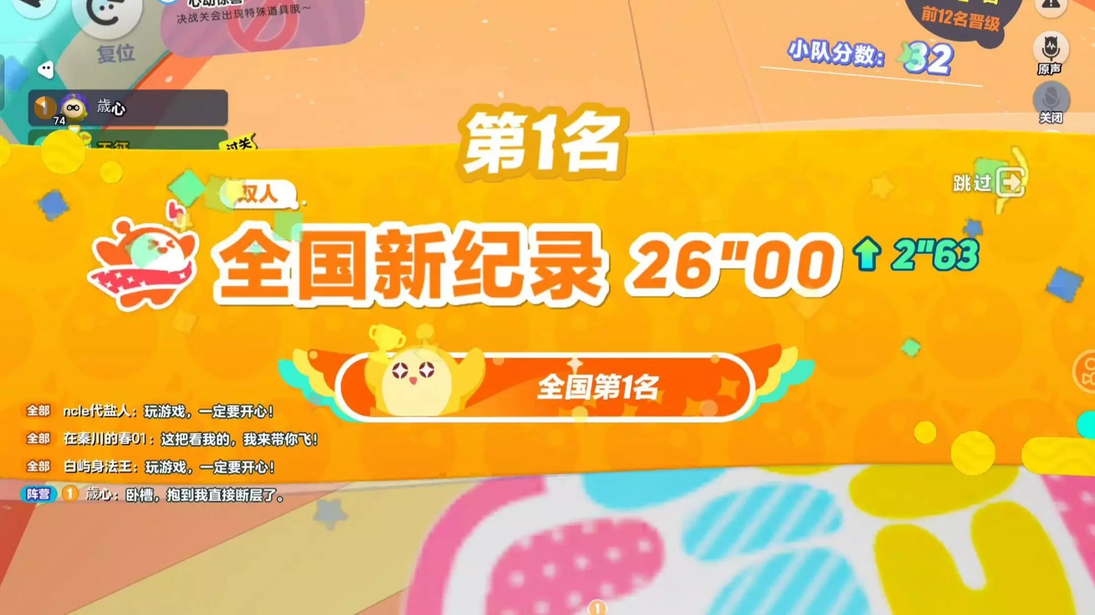 玩家在蛋仔派对的赛季末竞速关卡中,跑出47"33的全国新纪录,拿下全国第292名,还成功升至好友排名第1,感叹赛季末的全国排名似乎更容易获取。