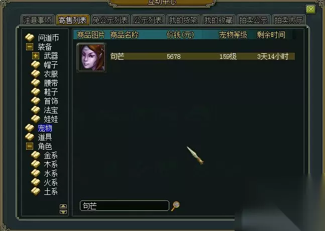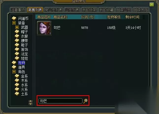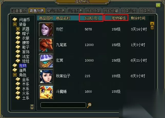 3、奇宝斋网站淘商品,找到想要的宠物和装备 ★技巧1:网站窗口分类查找 这个应该大家都会,按分类查找,左侧是有分类可以选择的。 ★技巧2:网站商品价格、等级排序 网站的商品也是可以进行等级、价格排序的,点击价格或者等级就会自己排序了