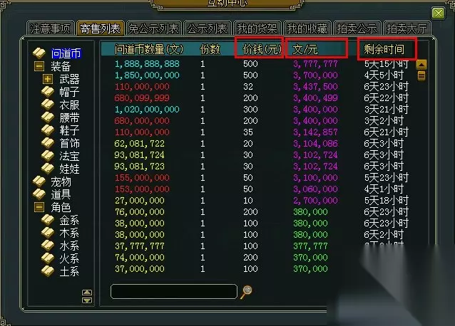 关键字:问道奇宝斋买家攻略 问道奇宝斋买宠物装备攻略 现在很多的朋友都是喜欢直接的去问道奇宝斋里面买一些宠物以及不错的装备的,但是经常的有很多的朋友是买错了或者是买贵的事情发生,那么怎么样才可以避免这些问题了? 问道奇宝斋买宠物装备攻略 支付的时候选择直接支付不使用光宇Go购余额就不会验证乾坤锁或手机,选了余额就会验。所以务必先下订单再付钱,而且下了订单,商品就有15分钟你可以去支付,先抢到手再说。 浏览购买商品具体流程 1、公示期预订、免公示期、寄售期宠物、装备都有什么不同 ★技巧1:公示期可预订、免公示期、寄售期里的东西都是可以买的,而且都是买了就能用的 公示期可预订 顾名思义就是还在公示期但是可以预订了在身上用的东西,购买了以后就能取出来用,但是是解认主状态,剩余的公示期时间要结束了之后就会自动解除认主。 免公示期和寄售期 免公示期和寄售期的东西是一样的,只是手续费不一样,免公示期的宠物和装备如果在免公示期期间(5天内)没有被购买,就进入寄售期了,和寄售期一样收手续费了。 ★技巧2:绑定的装备和宠物也是可以买的 有的人看到奇宝斋上有绑定的宠物、法宝、装备,其实绑定了的东西也是可以买的,只是买来了还是绑定状态而已,但是是可以用的,没有妨碍。 ★技巧3:什么样的宠物亲密是会保留的? 有的人在苦恼奇宝斋交易宠物亲密会消失,技巧大发,夫妻关系在奇宝斋交易也是不会掉亲密的。 ★技巧4:谈好的整套的套装怎么买卖 如果你想买一整套装备觉得比较麻烦,可以让他放在一个小号上指定自己交易。。。就是时间长点。。 2、游戏内淘商品,找到想要的宠物和装备 ★技巧1:游戏内窗口分类查找 这个应该大家都会,按分类查找,左侧是有分类可以选择的。 ★技巧2:游戏内商品价格、等级排序 快速的查自己理想价格内的东西,可以点击游戏里奇宝斋价格一栏都是可以进行升序降序排列的