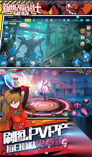 主打近身格斗体验,高度复刻动画中“屋岛作战”“第三新东京市攻防”等标志性战役场景。支持自由切换绫波丽、明日香、真嗣等多名驾驶员,不同角色间可组合释放连携技,形成多段式打击节奏。剧情完全贴合原作年表,全程搭载日语原声配音及高清动画片段,辅以丰富的角色外观系统——涵盖多套制服、作战服与限定配件,立绘更换功能支持个性化视觉定制。 手机扫码下载233乐园APP预约 预约订阅最新动态 优先233乐园APP下载 3、《新世纪福音战士破晓》