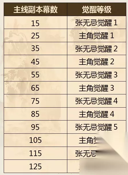 《新倚天屠龙记》双主角觉醒条件 游戏目前设置双主角制,即主角和张无忌共同作为主角设定,初期不可下阵(张无忌觉醒到一定阶段,觉醒6次后才可下阵),需要玩家在前期重点培养双主角。 玩家通关15幕后,可以迎来主角张无忌首次的觉醒;通关25幕,迎来主角的首次觉醒。 每次觉醒后,对应主角的基础属性会得到大幅提升,并且侠客品质和技能也会产生相应的变化;目前张无忌和主角可以进行6段觉醒,张无忌首次觉醒后还会产生角色形态变化(从少年张无忌变成成年张无忌)