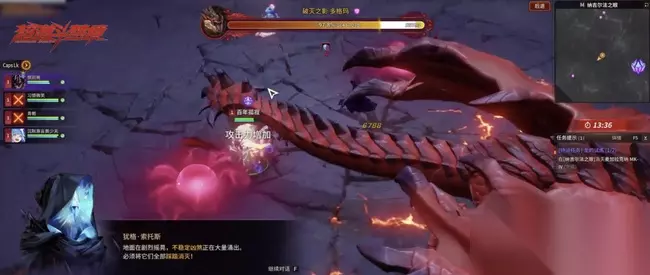 解决办法: ①打完第一个BOSS会爆出一个盾牌,让一名队友捡起来,在火焰棘龙飞过时打开护盾,其余队友即可在护盾内安全输出。