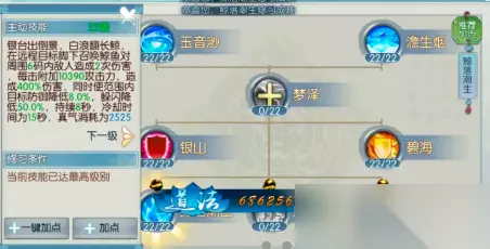 第三重技能是输出流派的核心,玉音渺(近距离法阵控制AOE)虽释放较慢但群体减益效果显著,鲸落潮生(远程范围AOE)作为主要输出手段必须点满。梦泽(提升攻击暴击)和碧海(增加防御气血)根据战斗场景灵活分配,银山(群体治疗减伤)可适当投入以应对高压环境。天书选择第一套和第三套,重点提升输出技能伤害并附加减益效果,封神搭配推荐仙族以增强适应性。