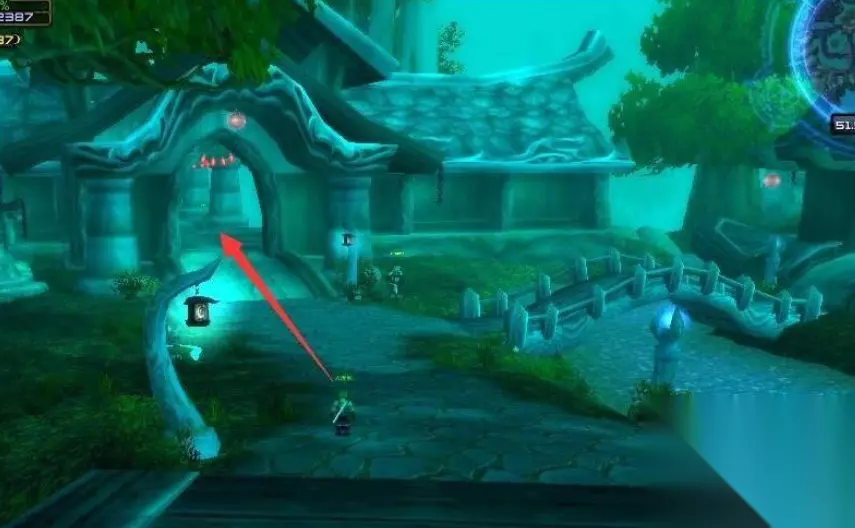 4、到达任务点后,会看到一个被夜光笼罩的小村庄,按照我的标记进入村庄。